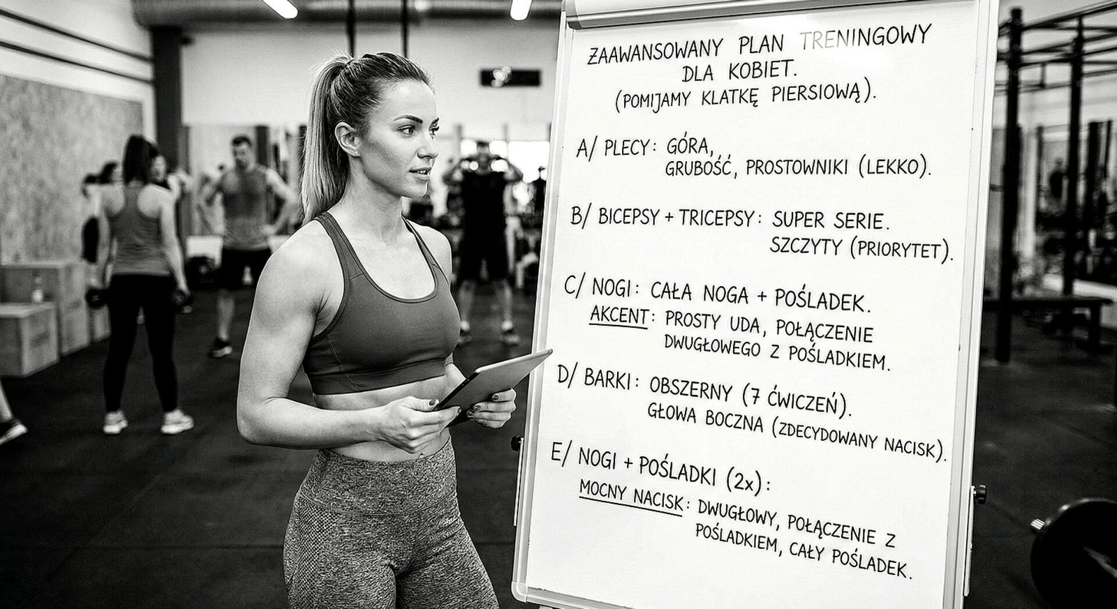 W tym planie skupiamy się na większych grupach mięśniowych, dlatego pomijamy trening klatki piersiowej oraz bicepsów i tricepsów:
